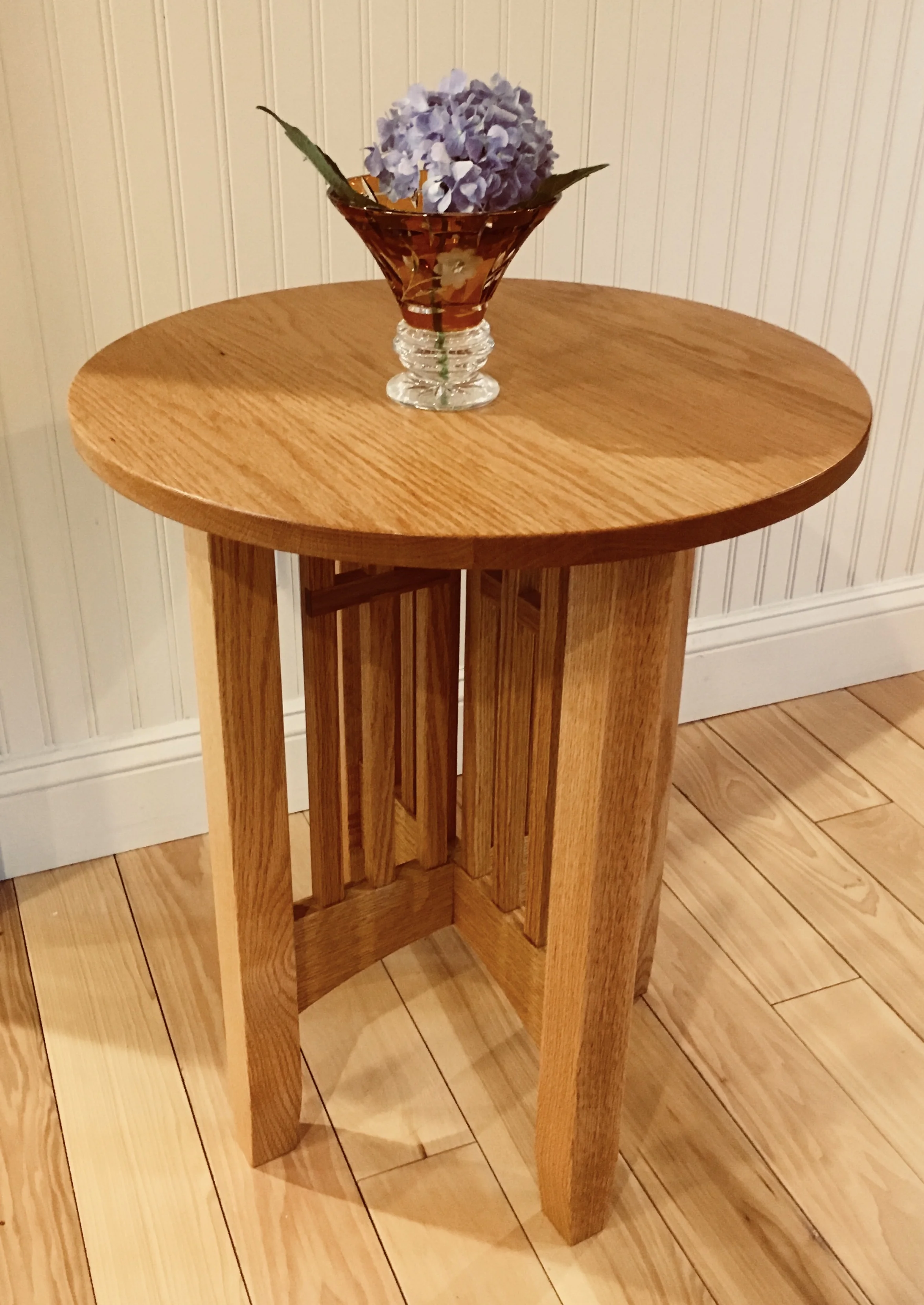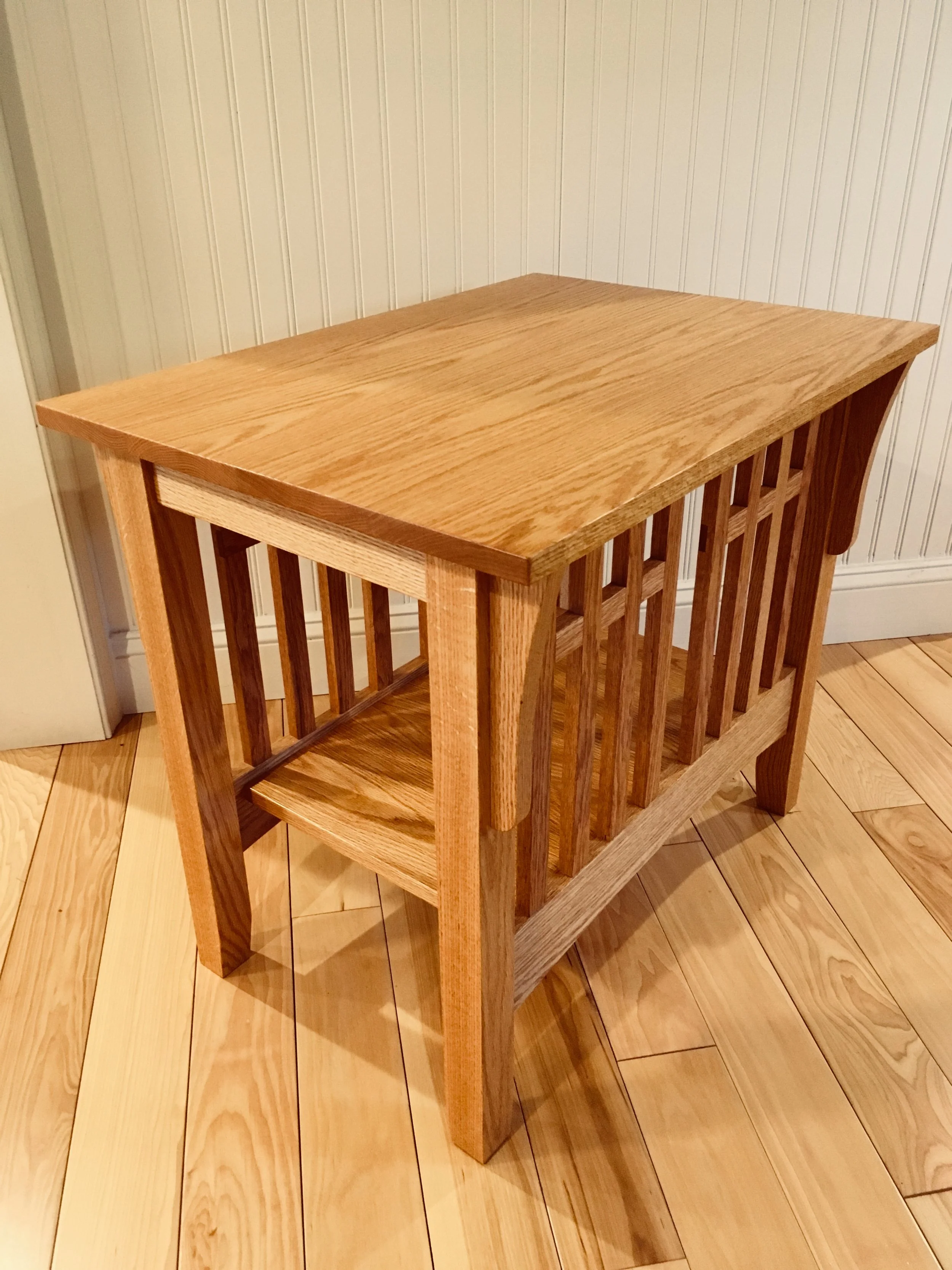 Made from red oak, this side table is as functional as it is beautiful. Crafted with mortise and tenon joinery, this elegant piece would make a great addition to any living room. Dimensions: 24”H x 20”W x 28”L