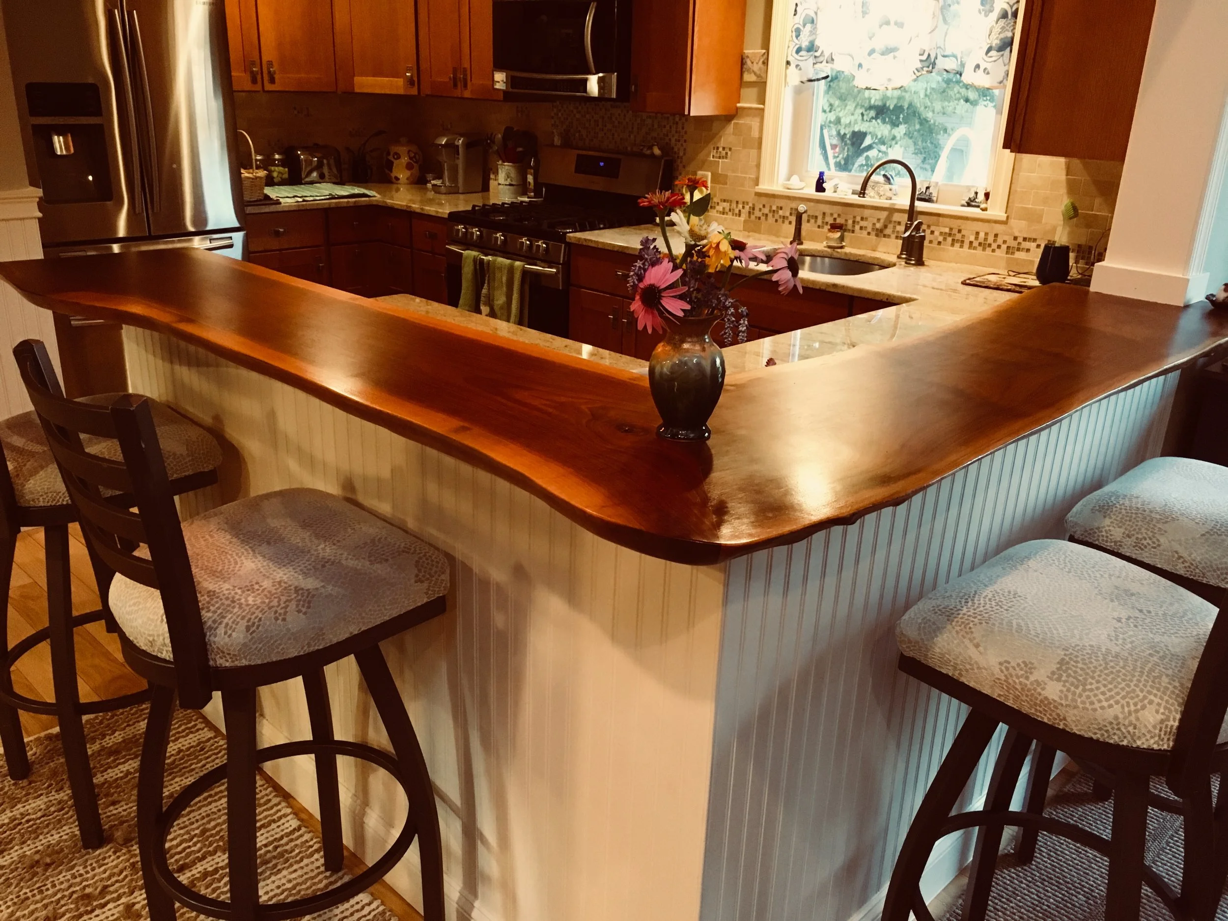 Looking to upgrade your bar or counter with something special? Solid hardwood slabs make for an amazing showpiece, bringing distinctive, natural beauty into your home. Natural tung oil makes for an eye popping finish that is food grade as well.